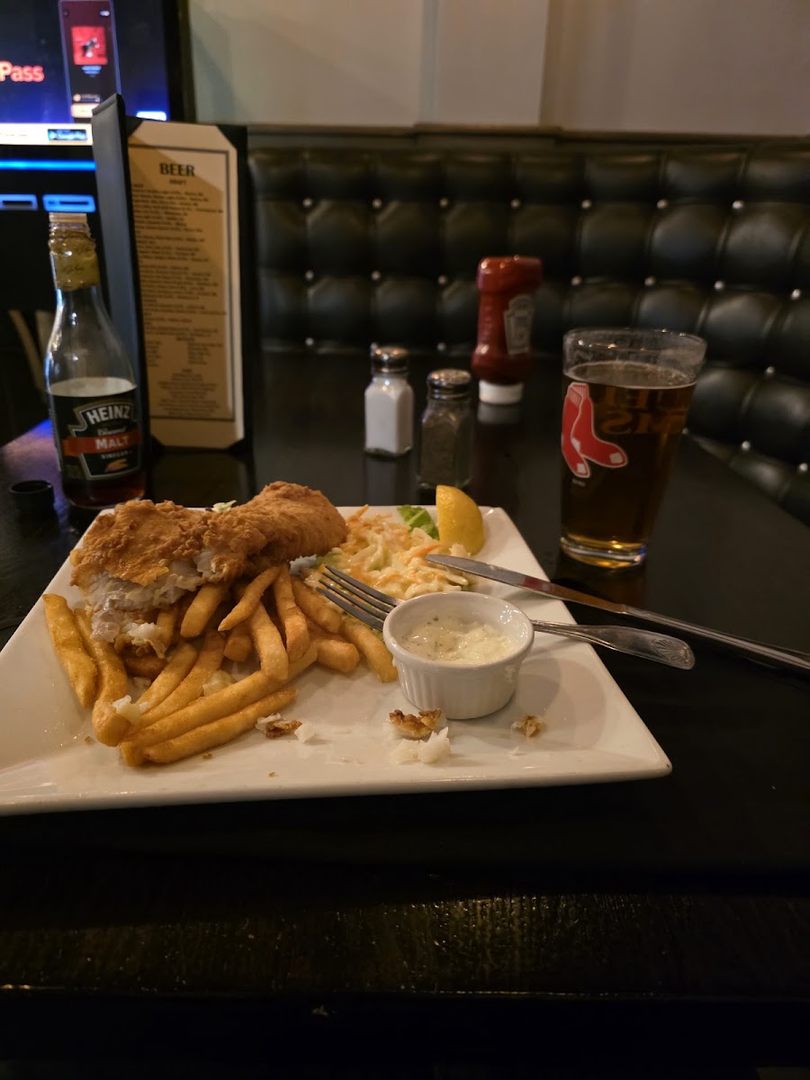 Just stopped to dine in for a dinner, got a Caesar salad and fish & chips. The fish was very flakey and tender but completely bland :( the tartar sauce did save the day along with the fries. The fries banggg.